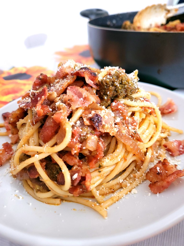 • You get salty, sweet and smoky all in one dish. This one-pot dish is packed full of different flavors that not one of them overpowers the other. You get salty and smoky from the bacon, sweet from the balsamic vinegar, with the hint of freshness from the basil and red onion! This is such a delicious dish.