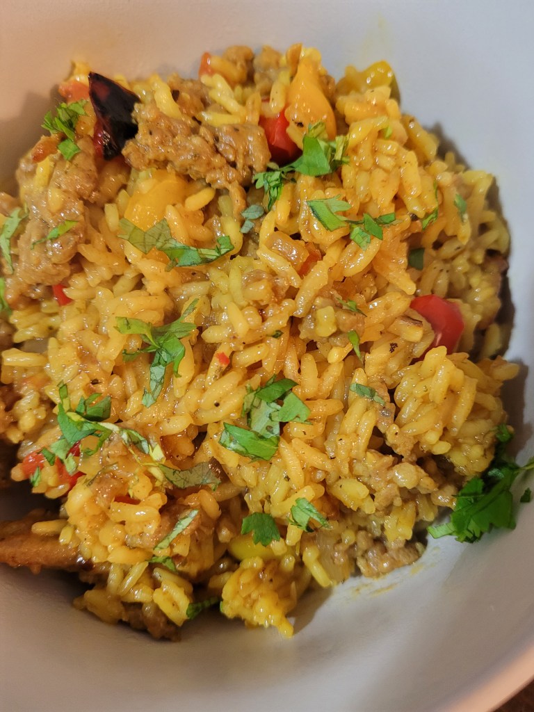 Sausage, peppers, and onions that have been taken in a different direction with spices and rice in this one-pot beauty! This is ready in 45 minutes and is the perfect weeknight meal when you have those unused spices lying around. Make this dish on a weeknight when you don’t want all the dishes!