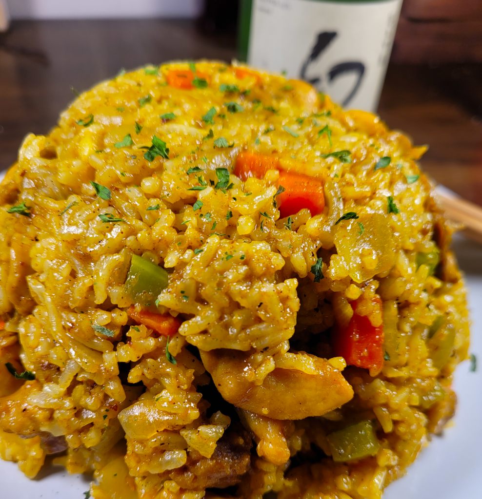 A classic Japanese dish found in the many homes of Japan! This is a “dry curry” fried rice. The curry flavor melds into the bits of chicken and veggies, and of course the rice. Add some raisins to give it a sweet layer of flavor! A truly inexpensive dish with bursting flavors from the curry. All you would need is some sake, plus more to drink with it!
