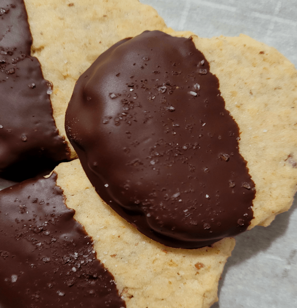 Potato chips covered in chocolate have been a sweet treat I enjoy every once in a while. I got curious to see if I could make it into a cookie. I was amazed at how I never knew this cookie was a retro treat! Most people make potato chip chocolate chip cookies, however, I decided to dip my cookies in chocolate! Pecans are added to the cookie for a nutty finish, but that is a common addition from what I’ve seen. Bittersweet or dark chocolate works best for this. You can use milk chocolate if you want.