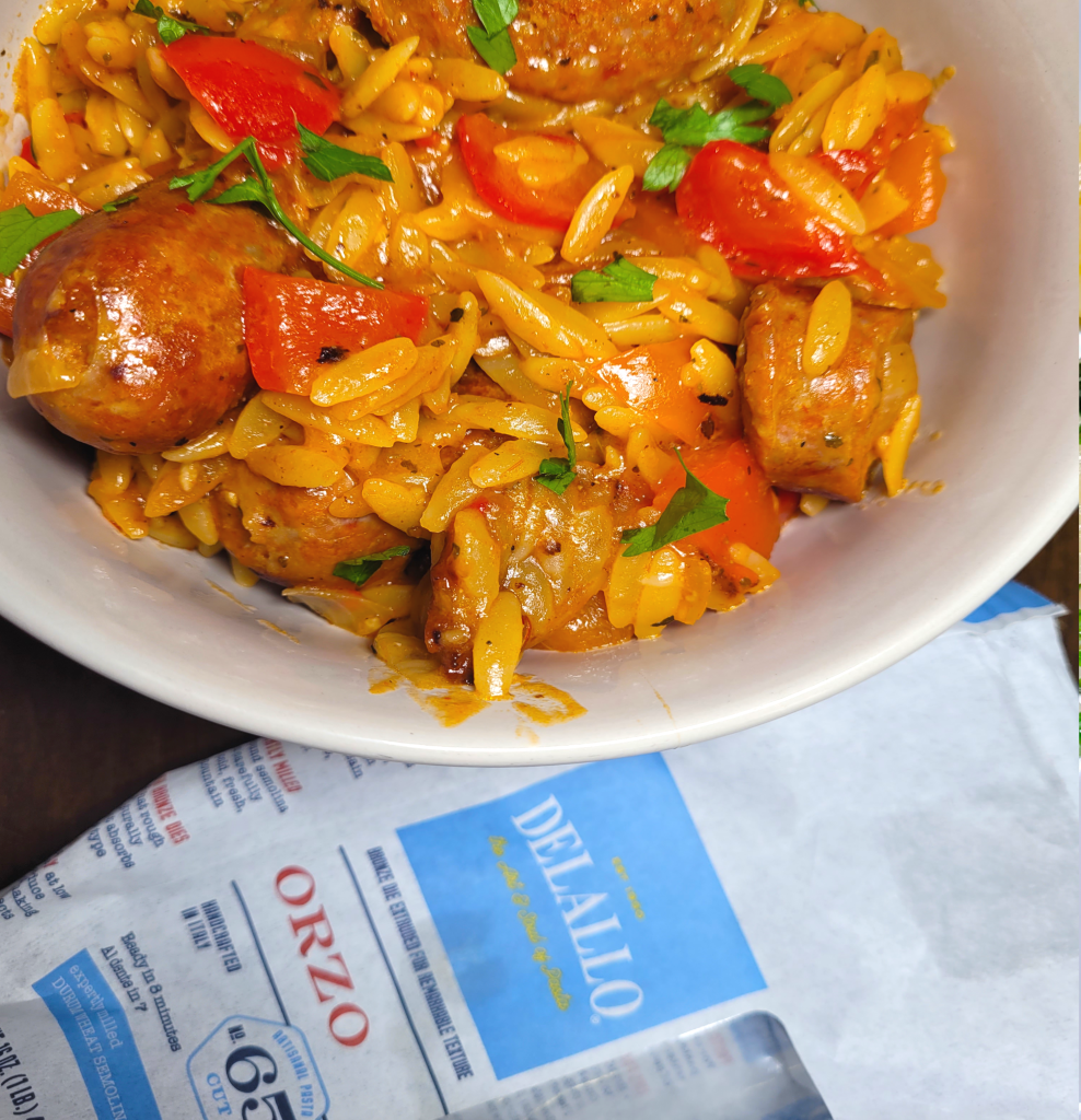 An easy one-pot meal with Italian flavors! Creamy without the cream, this dinner is super delicious and is ready within 30 minutes. This one-pot hearty meal is loaded with hot or mild sausage (depending on your preference), peppers, herbs, and of course the star of the show, the orzo! My husband loves this, and I guarantee your family will too!