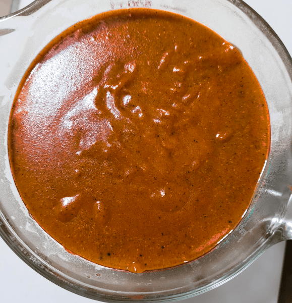 When it came to creating the perfect enchilada sauce recipe, I tried every which-way to make it. I thought “it’s red, so tomato sauce has to be it!” Turns out, I was very wrong. The sauce was goopy and tasted off. I tried it without any tomato ingredients, and it just wasn’t good. It tasted nothing like the sauce at the Mexican restaurants. I knew enchilada sauce was a bit thick, so I just tried it with tomato paste, thinking it would thicken. It came soupy and pooled at the bottom of the baking dish. After many attempts, I started to give up. I had the spices right, but the texture kept defeating me.