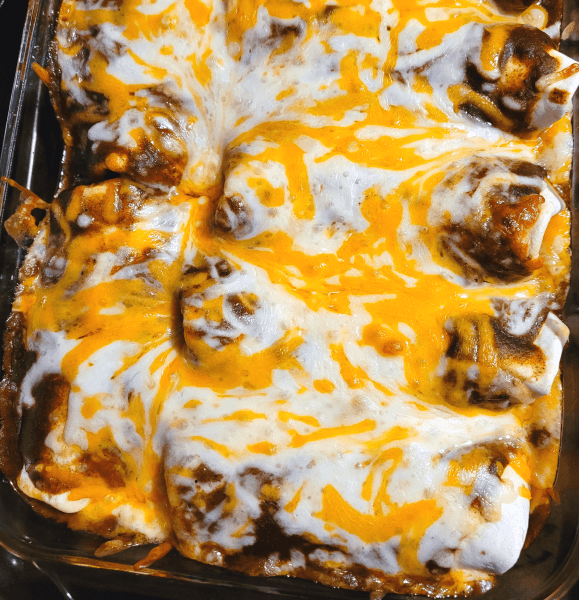 When I was testing this recipe, along with my final test of the Red Enchilada Sauce, I was loving how this was coming together so easily. I wanted to eat the filling by itself, but I managed to find self-control. Even smelling it bake in the oven was driving me insane. My kitchen was filled with the aromas of a Mexican restaurant. I can tell that this recipe will be asked for by my future children.