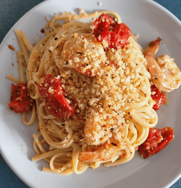 Linguine with Shrimp, Roasted Tomatoes & Chile Breadcrumbs