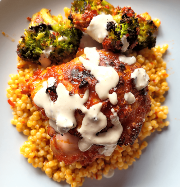 One response to “Honey Harissa Sheet Pan Chicken with Broccoli, Couscous, & Lemon Tahini Sauce”