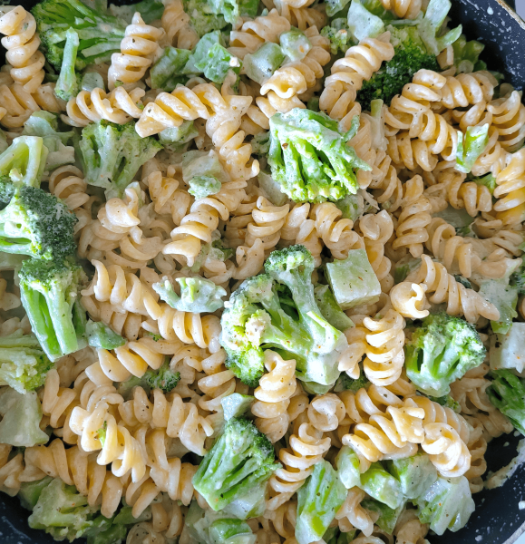 - Add in pasta & broccoli, and toss to coat. Add the pasta water if needed if the sauce is too thick.